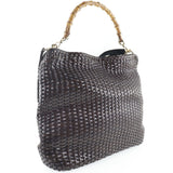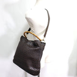 【GUCCI】グッチ バンブー 2WAYショルダー 編み込み 001-2404-1577 カーフ 茶 レディース トートバッグ