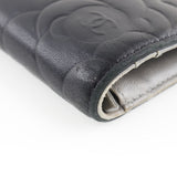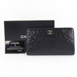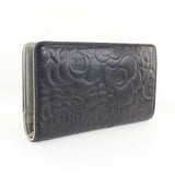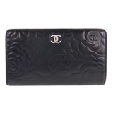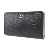 【CHANEL】シャネル カメリア ココマーク 二つ折り A36544 ラムスキン 黒 レディース 長財布 B-ランク