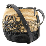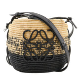【LOEWE】ロエベ ビーハイブ ショルダーバッグ バスケットバッグ カゴバッグ A223Z48X05 ラフィア×カーフ 黒/茶 斜め掛け 肩掛け 巾着 Beehive レディースA+ランク