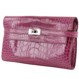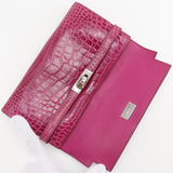 [HERMES] Hermes Kelly Wallet Purse Alligator Raspberry Pink □K engraved beltHardware Kelly wallet women