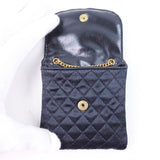 [CHANEL] Chanel Chain Pochette Matrasse Micro Shoulder Satin Black Ladies Pouch A-rank