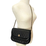 [CHANEL] Chanel Matrasse shoulder bag Chain shoulder ramskin black shoulder turn lock Matelasse Ladies