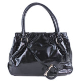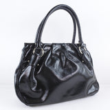 [Salvatore Ferragamo] Salvatore Ferragamo Ganchini EY-21 A066 Enamel Black Ladies Handbag A-rank