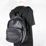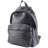 [Bottegaveneta]BOTTEGA VENETA Intrecciato Backpack・ Daypack Bolso de hombro negro de cuero 2way a4 doble cremallería intrecciato para hombres