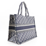 [Dior] Christian Dior Libro Tote Bolsa Medium Tote Bordado oblicuo lienzo azul marino