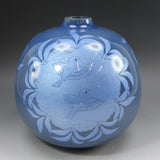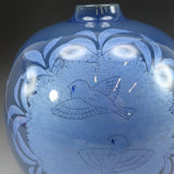 [모델명] 나카타 카즈오, 스미지, 하늘색 유약, 은빛 안감, 새 무늬 꽃병