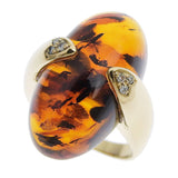 14号 リング・指輪 K18ホワイトゴールド×琥珀・アンバー×ダイヤモンド 0.06刻印 約8.7g レディースSAランク