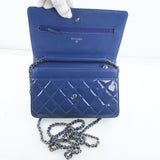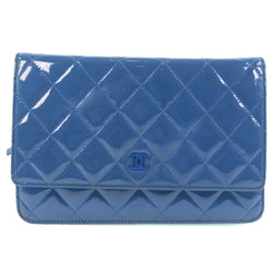 【CHANEL】シャネル チェーンウォレット マトラッセ ショルダーバッグ パテントレザー 青 レディース ショルダーバッグ