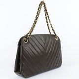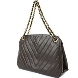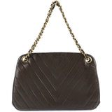 【CHANEL】シャネル Vステッチ ハンドバッグ シェブロン ヴィンテージ ラムスキン 茶 がまぐち V stitch レディース