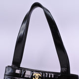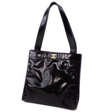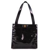 【CHANEL】シャネル パンチングカメリアバッグ トートバッグ エナメル 黒 レディース トートバッグ