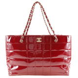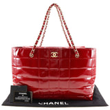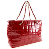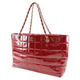 【CHANEL】シャネル チェーンバッグ トートバッグ ココマーク エナメル 赤 肩掛け 手提げ A4 オープン Chain bag レディースA-ランク